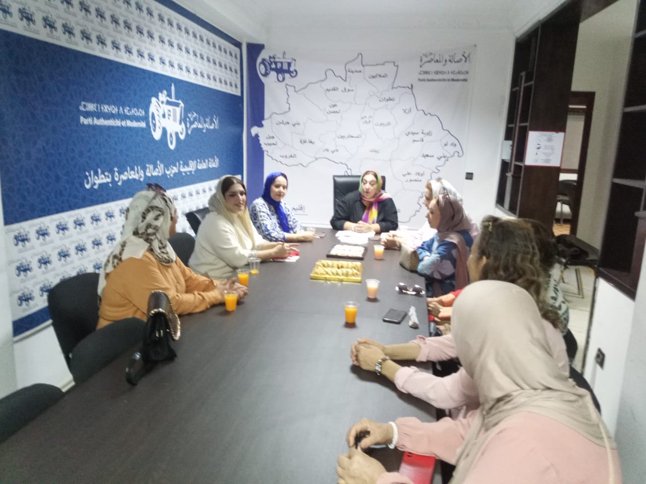 أشرفت؛ نائب رئيسة المكتب الجهوي لمنظمة نساء حزب الأصالة والمعاصرة بجهة طنجة- تطوان- الحسيمة، حكمت بادي، اليوم الجمعة 23 أكتوبر 2025، على لقاء تأطيري لفائدة نساء إقليم تطوان، وذلك بمقر الحزب بتطوان، في إطار البرنامج الجهوي للمنظمة الهادف إلى دعم وتمكين المرأة وتعزيز حضورها في التنمية محليا.