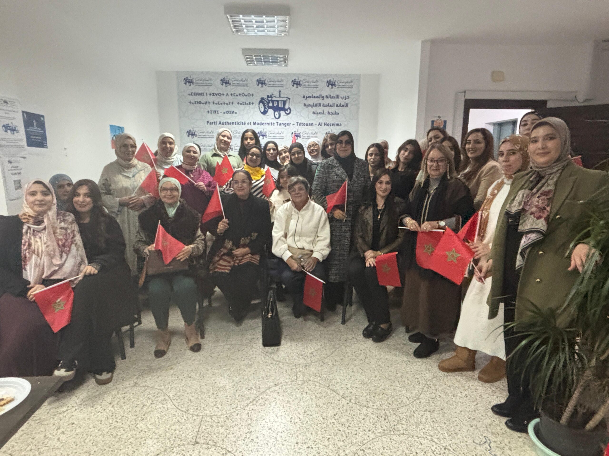 وجاء النشاط، الذي احتضنه المقر الجهوي للحزب بطنجة، اليوم الثلاثاء 18 نونبر الجاري؛ تحت عنوان: “من المسيرة الخضراء إلى القرار الأممي… قصة وطن يكتب انتصاره”، بحضور رئيسة منظمة نساء الأصالة والمعاصرة- النائب الأول للأمين الإقليمي قلوب فيطح، وعضو المكتب التنفيذي للمنظمة مينة الروشاطي، وعضوي قطب النساء بالأمانة الإقليمية- والمكتب الجهوي لمنظمة النساء بجهة طنجة- تطوان- الحسيمة؛ خديجة باحيدا ولطيفة الزباير، إلى جانب منسق قطب الشباب نصرو العبدلاوي، وأعضاء القطب بذات الأمانة الإقليمية، ومناضلات الحزب ومناضليه.