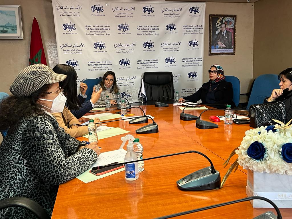 اللقاء التحضيري الأولي؛ خصص لمناقشة مجموعة من الأمور الهامة؛ التي تهم نساء الحزب بجهة الدار البيضاء سطات، كما تمت مناقشة استراتيجية العمل لإطلاق دينامية نسائية بالجهة، وذلك من خلال عقد عدد من الأنشطة في القادم من الأيام جهويا؛ ومن بينها اللقاء الذي سينظم يوم 05 فبراير 2022 بالدار البيضاء، وسيكون مخصصا لنساء الحزب بالجهة من مناضلات ومنتخبات وعضوات المجلس الوطني للحزب.