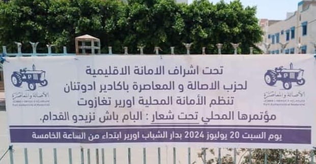 تحت شعار “البام باش نزيدو للقدام”، تستعد الأمانة المحلية لحزب الأصالة والمعاصرة أورير تغازوت لعقد مؤتمرها المحلي، يوم السبت 20 يوليوز 2024، بقاعة الشباب بأورير، ابتداء من الساعة 5 بعد الزوال.