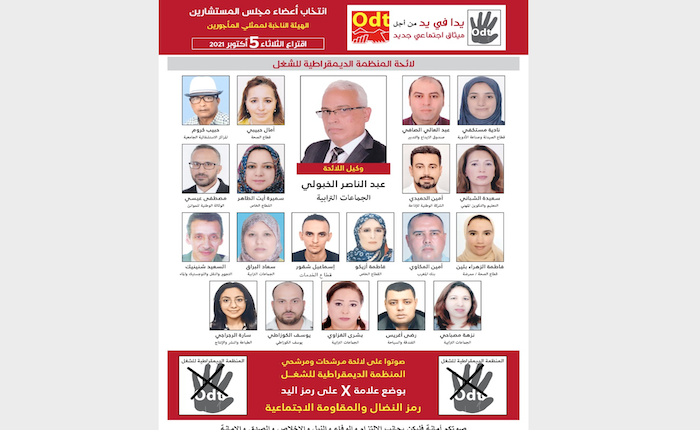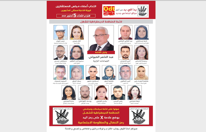 خديجة الرحاليرشحت المنظمة الديمقراطية للشغل، السيد عبد الناصر الخبولي وكيلا للائحتها لعضوية مجلس المستشارين كممثل للمأجورين، خلال الانتخابات التي ستجري يوم الثلاثاء 5 أكتوبر المقبل، ليدافع عن الطبقة العاملة وصون حقوقها الاجتماعية والانسانية والترافع وطرح البدائل والمساهمة في التشريعات والسياسة الاجتماعية الهادفة إلى تحسين الوضع المعيشي للطبقة العاملة.