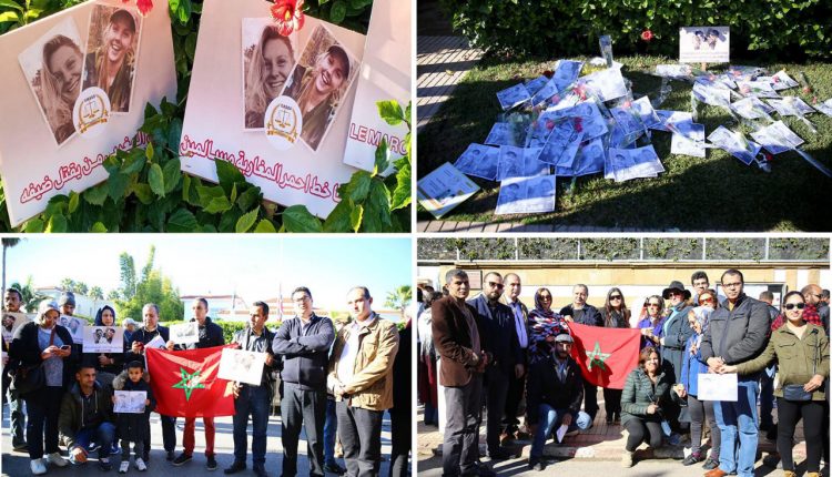 وهكذا حل نشطاء سياسيون لحزب الأصالة والمعاصرة، إلى مقر سفارتي البلدين، جنبا إلى جنب فعاليات جمعوية وممثلي منظمات غير حكومية وهيئات سياسية، حاملين معهم أكاليل ورد وباقات تعزية، بعض منها كتب عليها باللغة الانجليزية ” ليس المغربي من يقتل ضيوفه”، كما أضاءوا شموعا تكريما لروح السائحتين لوزي ومارين وتعبيرا عن مشاعر الحزن الشديد الذين خالج عموم المغاربة بسبب وقائع الجريمة الإرهابية.