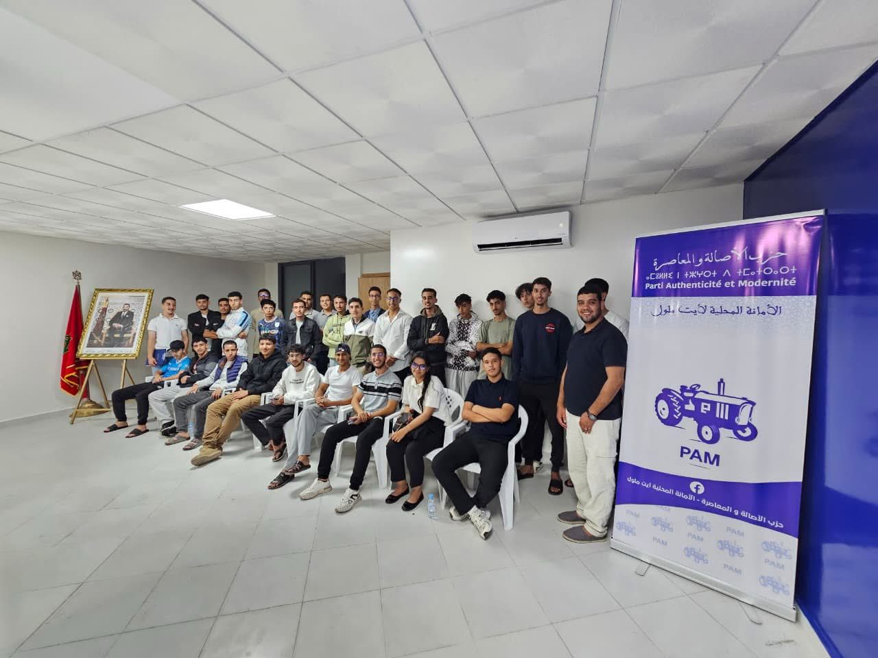 في إطار تنزيل مضامين المذكرة التوجيهية الصادرة عن القيادة الجماعية للأمانة العامة لحزب الأصالة والمعاصرة، وتفعيلا لبرنامجها التأطيري والتكويني، نظمت الأمانة المحلية للحزب بأيت ملول، يوم الأحد 26 أكتوبر 2025، لقاء تواصليا مع شباب المنطقة بمقر الحزب بزنقة واد المخازن، حي العهد الجديد.