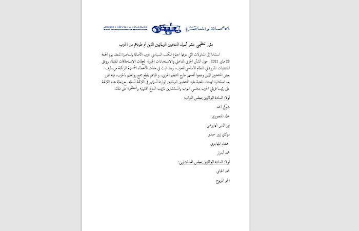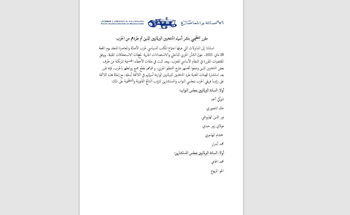 أصدر، حزب الأصالة والمعاصرة مقرراً تنظيميا بشأن البرلمانيين (مجلس النواب، ومجلس المستشارين) الذين تم طردهم من الحزب.