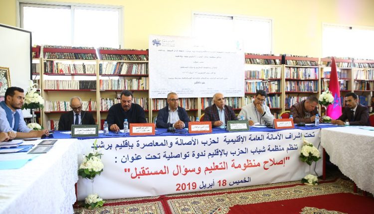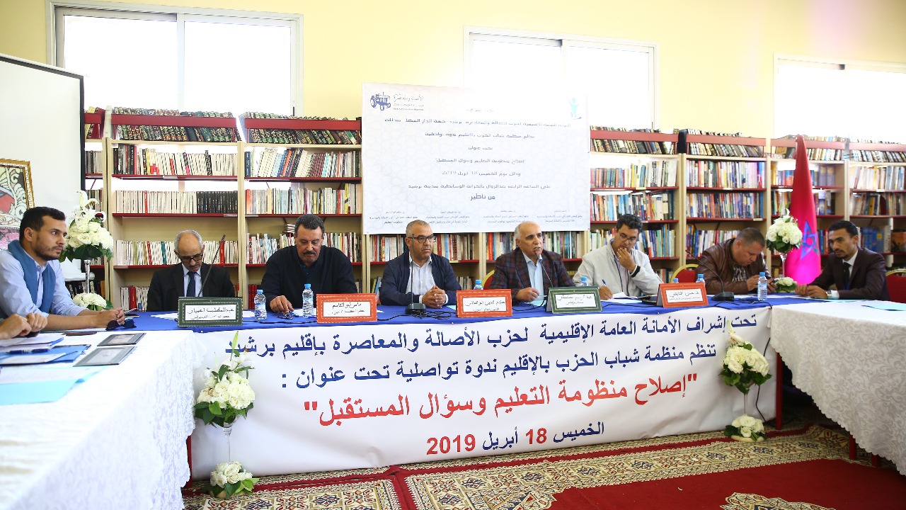 تحت إشراف من الأمانة العامة الإقليمية لحزب الأصالة والمعاصرة ببرشيد، نظمت منظمة شباب حزب الأصالة والمعاصرة بإقليم برشيد، يوم الخميس 18 أبريل 2019 بالخزانة الوسائطية، ندوة تواصلية، تحت شعار “إصلاح منظومة التعليم وسؤال المستقبل”.