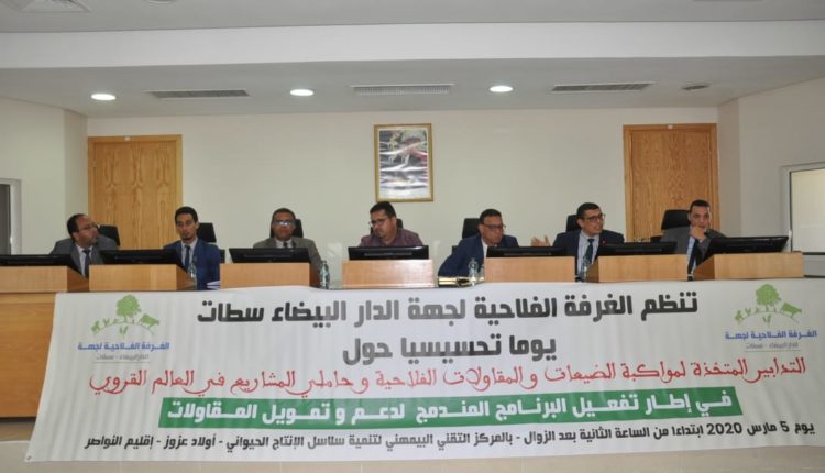 ويروم هذا اللقاء التحسيسي المنظم من طرف الغرفة الفلاحية لجهة الدار البيضاء-سطات، هو استعراض التدابير المتخذة لمواكبة الضيعات والمقاولات الفلاحية وحاملي المشاريع في المجال القروي، وتفعيل مضامين الاتفاقيات التي تم توقيعها أمام أنظار الملك محمد السادس لإطلاق البرنامج المندمج لدعم وتمويل المقاولات، وتسليط الضوء على أهمية تشجيع التشغيل الذاتي والدور الأساسي الذي يلعبه في تنشيط الاقتصاد.