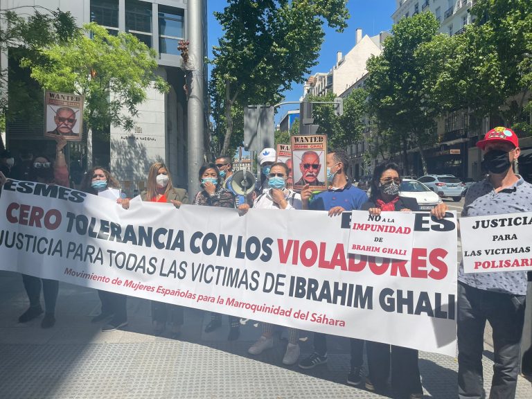 نظمت الحركة النسائية الإسبانية لمغربية الصحراء وقفة احتجاجية بمشاركة فعاليات مدنية أخرى، أخيرا، أمام مقر المحكمة الوطنية الإسبانية في مدريد، ضد “تجاهل السلطات الأمنية والقضائية بإسبانيا لمعاناة ضحايا المجرم إبراهيم غالي، والسماح له بدخول التراب الإسباني بوثائق مزورة، في انتهاك واضح لمبدأ القانون الدولي القاضي بمنع الإفلات من العقاب”.
