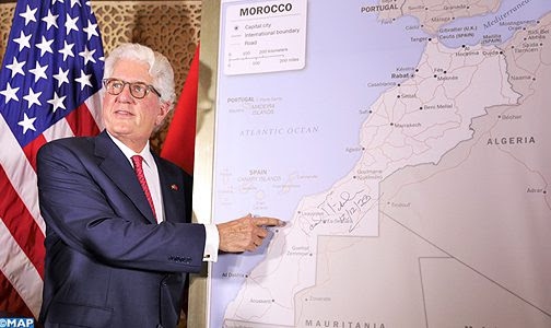 كما أشار السفير الأمريكي إلى أنه يعتزم تقديم هذه الخريطة كهدية لصاحب الجلالة الملك محمد السادس، اعترافا بالقيادة “الجريئة” لجلالته ودعمه المتواصل والثمين للصداقة العميقة بين الولايات المتحدة الأمريكية والمملكة المغربية.
