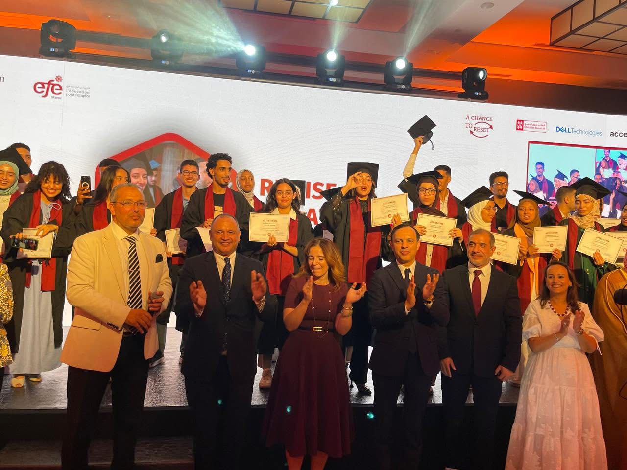 نُظم، بالرباط، حفل اختتام مشروع “A Chance to RESET” الذي أشرفت على تنفيذه مؤسسة EFE-Maroc بشراكة مع الوكالة الوطنية لإنعاش التشغيل والكفاءات (أنابيك) ووزارة الإدماج الاقتصادي والمقاولة الصغرى والتشغيل والكفاءات، بحضور ممثلين عن الشركاء المؤسساتيين والاقتصاديين والفاعلين في مجال التكوين والإدماج المهني.
