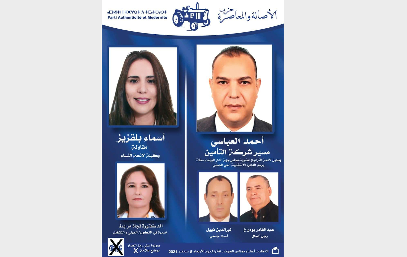 أوضح أحمد العباسي وكيل لائحة حزب الأصالة والمعاصرة لانتخابات أعضاء مجلس جهة الدار البيضاء سطات بعمالة مقاطعات الحي الحسني، أن كل منتخبي حزب الأصالة والمعاصرة بعمالة عازمون على تحقيق نتائج مشرفة في الإستحقاقات الإنتخابية المقبلة التي ستجرى يوم 08 شتنبر 2021.