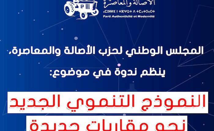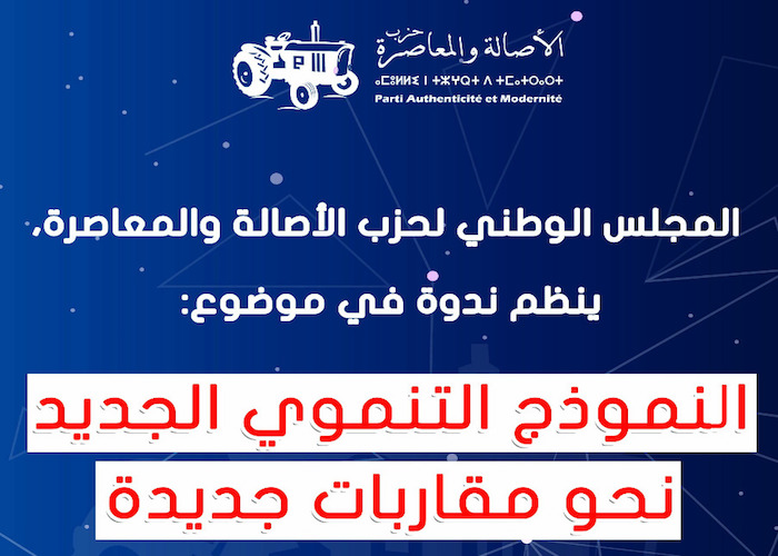 ينظم المجلس الوطني لحزب الأصالة والمعاصرة، يومه السبت 2 مارس 2019، بمدينة الرباط، ندوة في موضوع : “النموذج التنموي الجديد: نحو مقاربات جديدة “.