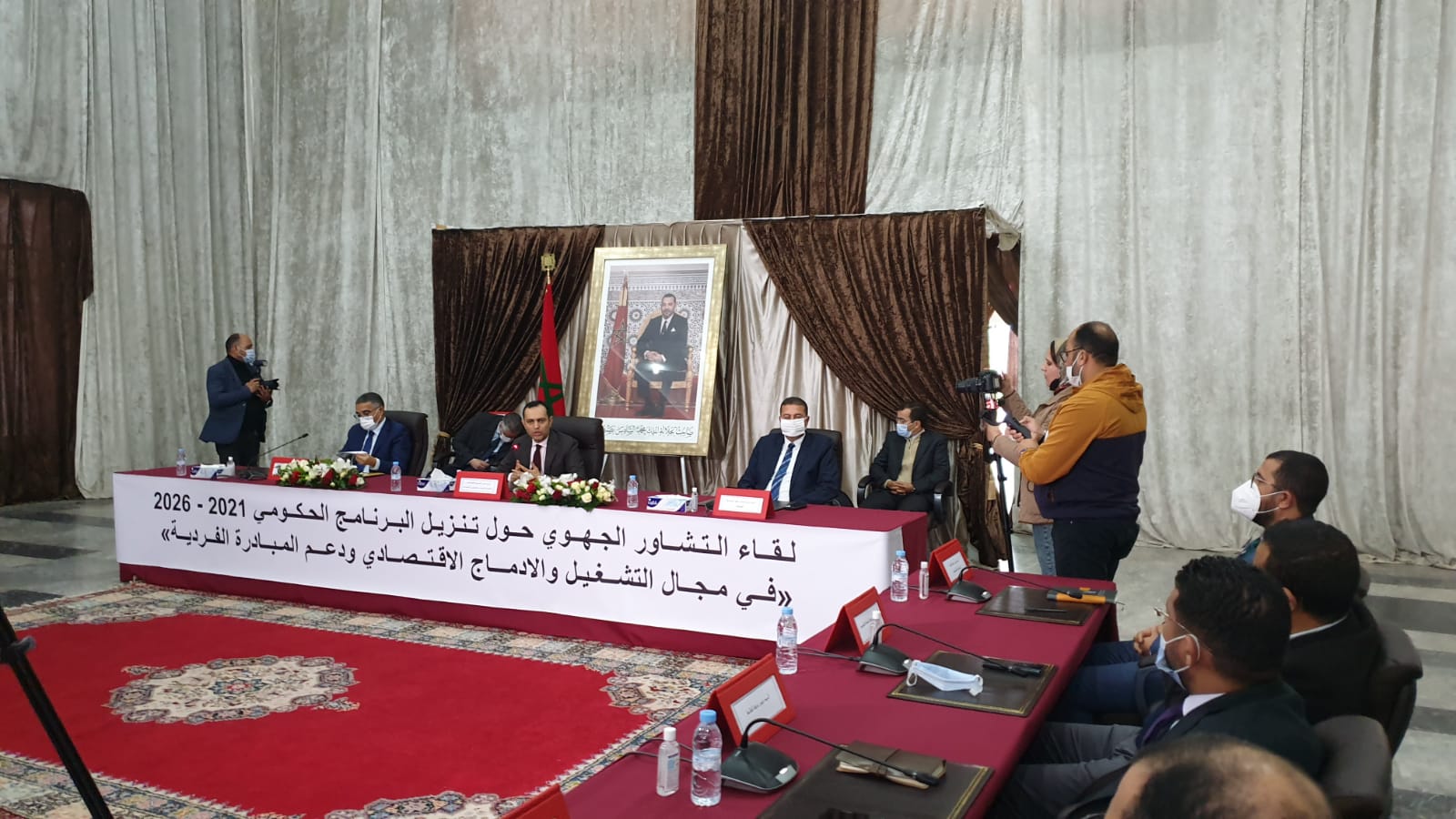 مواصلة للقاءات التشاورية من أجل تنفيذ البرنامج الحكومي 2026-2021 في مجال التشغيل والإدماج الاقتصادي ودعم المبادرة الفردية، عقد وزير الإدماج الاقتصادي والمقاولة الصغرى والتشغيل والكفاءات، يونس السكوري؛ يوم الأربعاء 24 نونبر2021 بمقر ولاية الجهة، لقاء تشاوريا بحضور عدد كبير من المنتخبين والمسؤولين والفاعلين.