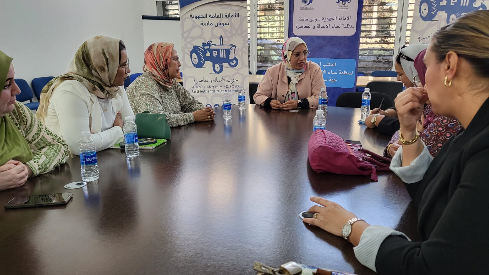 عقد المكتب الجهوي لمنظمة نساء الأصالة والمعاصرة بجهة سوس- ماسة؛ اليوم الخميس 21 نونبر الجاري؛ بالمقر الجهوي للحزب بأكادير؛ اجتماعا ترأسته جهاد حجاوي رئيسة المكتب الجهوي بحضور السيدات أعضاء المكتب.