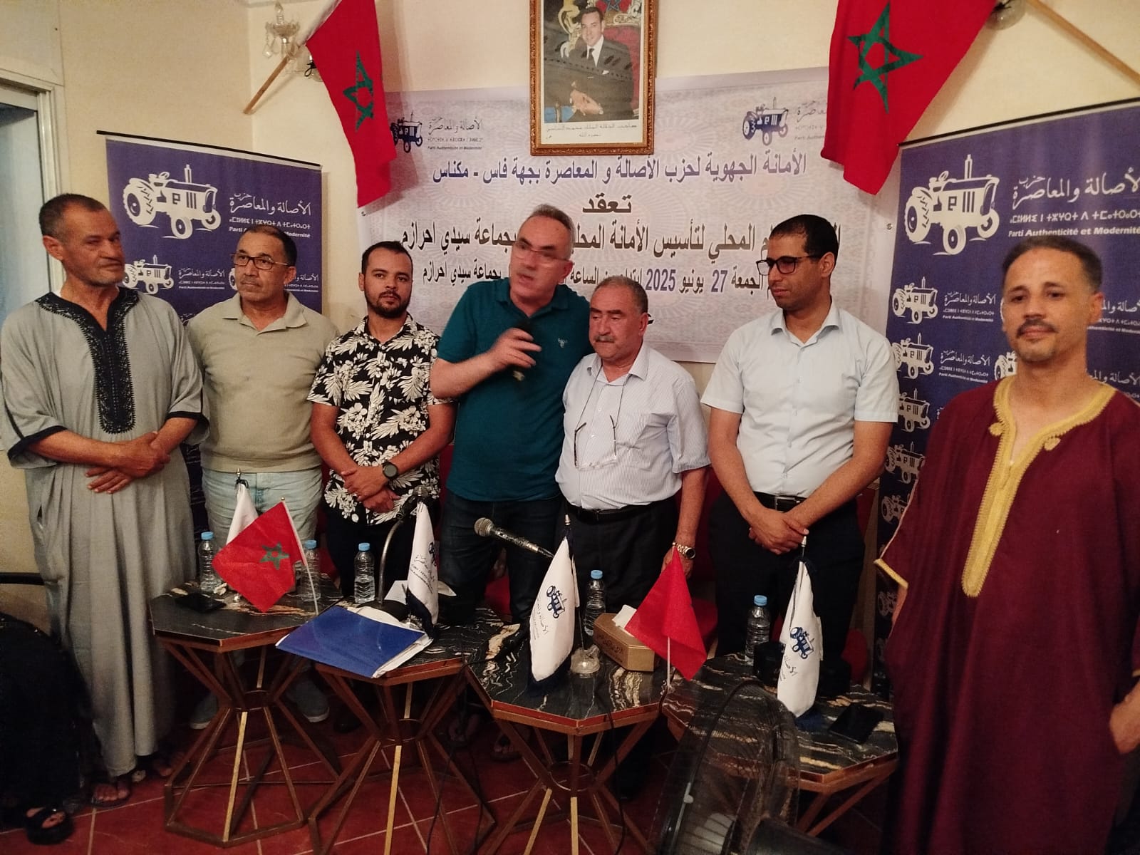 أشرف الدكتور محمد الحجيرة الأمين الجهوي لحزب الأصالة والمعاصرة بجهة فاس- مكناس على الجمع العام لتأسيس الأمانة المحلية بجماعة سيدي احرازم/ عمالة فاس؛ بحضور النائب البرلماني عن دائرة فاس الجنوبية عزيز اللبار، ونائب الأمين الجهوي عبد العالي شينون، وعضو الأمانة الجهوية أحمد البقالي؛ يوم الجمعة 27 يونيو 2025 بالمقر المحلي للحزب بجماعة سيدي احرازم.