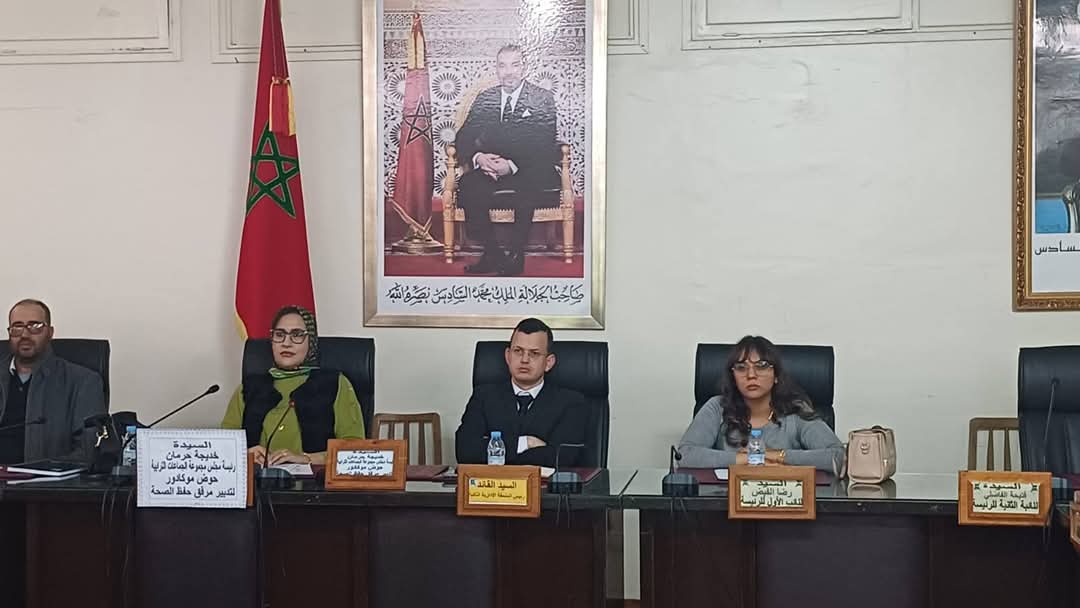 كما تم تقديم عرض مفصل حول تقدم أشغال بناء وتجهيز مقر مجموعة الجماعات الترابية حوض موكادور، الذي سيخصص لتدبير مرفق حفظ الصحة. ويعد هذا المشروع خطوة هامة في تحسين ظروف عمل المجلس، وتسهيل قيامه بالمهام الموكلة إليه، لاسيما في ما يتعلق بتطوير البنية التحتية الصحية وتوفير بيئة عمل ملائمة تدعم الأداء الفعال للمجلس.