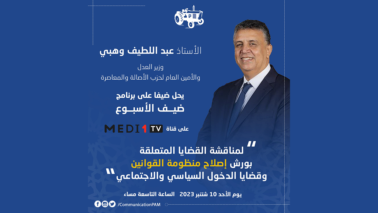 على قناة MEDI1TV؛ لمناقشة القضايا المتعلقة بورش إصلاح منظومة القوانين وقضايا الدخول السياسي والاجتماعي.