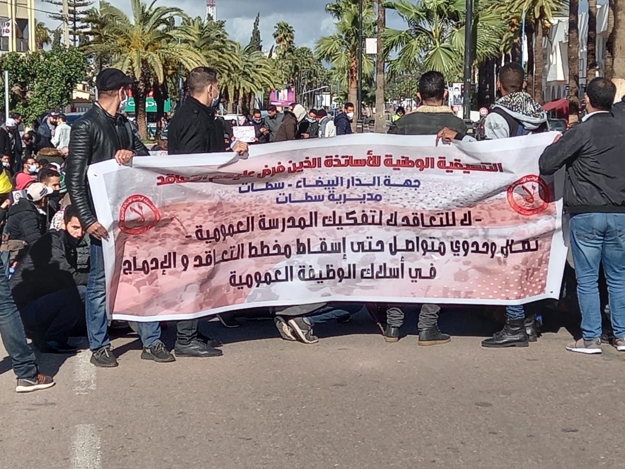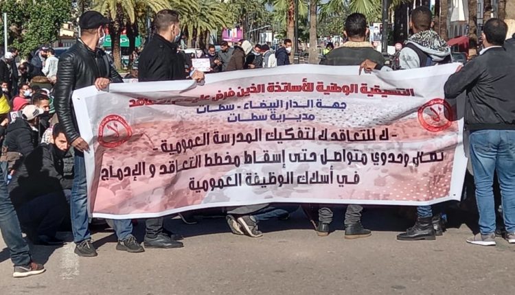 وأعلن الأساتذة، عبر بيان، للتنسيقية الجهوية للأساتذة الذين فرض عليهم التعاقد بالجهة، عن تشبثهم بإسقاط مخطط التعاقد وإدماج كافة الأساتذة في أسلاك الوظيفة العمومية، مطالبين وزارة التربية الوطنية، بالإعلان عن المناصب الشاغرة لفائدة الأساتذة الجدد والتعجيل في ذلك.
