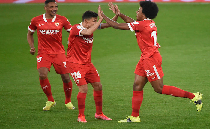 وافتتح إشبيلية التسجيل سريعا عبر مدافعه الفرنسي جول كونديه الذي حو ل براسه كرة من ركلة ركنية ارتقى لها الحارس إيفان فيار من دون أن يمنعها من هز الشباك (د8).