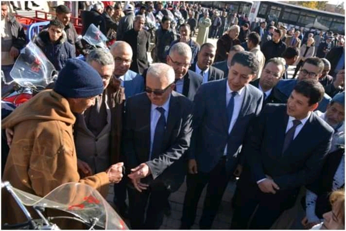 كما أشرف بعيوي بالساحة المقابلة لمقر جماعة جرادة، على تسليم 11 دراجة ثلاثية العجلات، مقتناة من طرف مجلس جهة الشرق لفائدة التعاونيات المستفيدة من رخص استثنائية لاستغلال الفحم الحجري بمدينة جرادة، إذ يندرج هذا المشروع في إطار الدعم الذي يقدمه مجلس الجهة للتعاونيات من أجل مساعدتها على تسويق منتوجاتها من الفحم الحجري، وتشجيعها على تحسين قدرتها الإنتاجية.