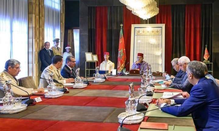 “ﺗرأس ﺻﺎﺣب اﻟﺟﻼﻟﺔ اﻟﻣﻠك ﻣﺣﻣد اﻟﺳﺎدس، ﻧﺻره ﷲ، ﻣرﻓوﻗﺎ ﺑﺻﺎﺣب اﻟﺳﻣو اﻟﻣﻠﻛﻲ وﻟﻲ اﻟﻌﮭد اﻷﻣﯾر ﻣوﻻي اﻟﺣﺳن، ﺑﻌد زوال اﻟﺳﺑت 9 ﺷﺗﻧﺑر 2023 ﺑﺎﻟﻘﺻر اﻟﻣﻠﻛﻲ ﺑﺎﻟرﺑﺎط، ﺟﻠﺳﺔ ﻋﻣل ﺧﺻﺻت ﻟﺑﺣث اﻟوﺿﻊ ﻓﻲ أﻋﻘﺎب اﻟزﻟزال المؤلم، اﻟذي وﻗﻊ يوم اﻟﺟﻣﻌﺔ 8 شتنبر، واﻟذي ﺧﻠف ﺧﺳﺎﺋر ﺑﺷرﯾﺔ كبيرة وﻣﺎدﯾﺔ ﻓﻲ العديد ﻣن ﺟﮭﺎت اﻟﻣﻣﻠﻛﺔ.