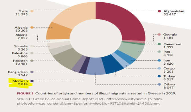 وأوضح التقرير أن المهاجرين المغاربة يحتلون المرتبة الأولى في عدد المهاجرين السريين المتواجدين بمنطقة ‘’مونتينيغرو’’، في الفترة الممتدة بين 2015 و2020، في يحتل المغاربة المرتبة الثالثة في ‘’ألبانيا’’ بعد كل من سوريا وأفغانستان، ونفس المرتبة في ‘’البوسنة والهرسك’’ بعد كل من باكستان وأفغانستان، في الفترة ذاتها، مؤكدا أن عدد المغاربة الذين تم توقيفهم باليونان سنة 2019، بلغ ما مجموعه 2814 مهاجر سري، كما هو الشأن لعدد الجزائريين الذي بلغ عددهم 2057 والسوريين 21395 والتركيين 8017، وجنسيات أخرى، وباكستان والصومال والفلسطينيين والايرانيين والكاميرونين والعراقيين والافغان والجيورجيين.