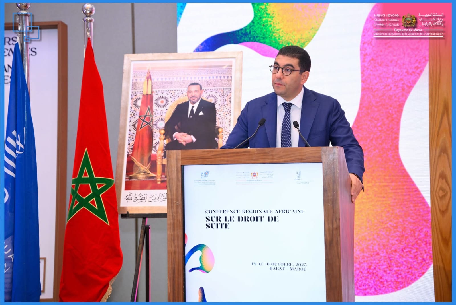 أشرف محمد المهدي بنسعيد، وزير الشباب والثقافة والتواصل، على افتتاح الندوة الإقليمية الإفريقية حول حق التتبع، المنظمة من طرف المنظمة العالمية للملكية الفكرية (OMPI) بشراكة مع المكتب المغربي لحقوق المؤلفين والحقوق المجاورة، وبدعم من الوزارة.