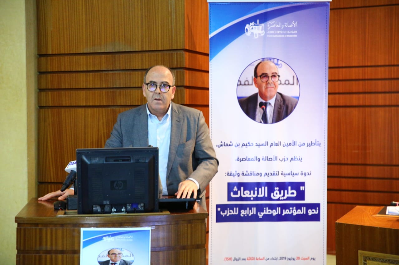 وعرج بن شماش متحدثا في كلمته بمناسبة الندوة السياسية المنظمة حول موضوع: “طريق الانبعاث .. نحو المؤتمر الوطني الرابع للحزب”، مساء يوم السبت 20 يوليوز الجاري، بالرباط، (عرج) على أشكال الخطورة المؤثرة على استدامة المشروع الحزبي للأصالة والمعاصرة.