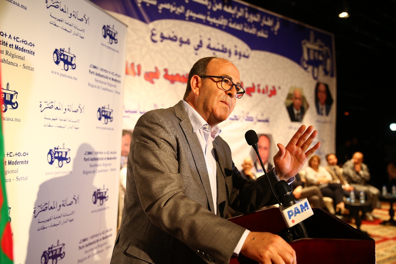 كما طالب الأمين العام للبام بضرورة التمسك والتشبث بمغربيتنا لأنها أساس الرقي والتنمية، مسلطا الضوء على دراسة ألمانية أفادت أن نسبة %1 من الشباب فقط منخرطون في العمل السياسي، وهو ما يوضح بجلاء عدم ثقة هذه الفئة بالأحزاب والممارسة السياسية.