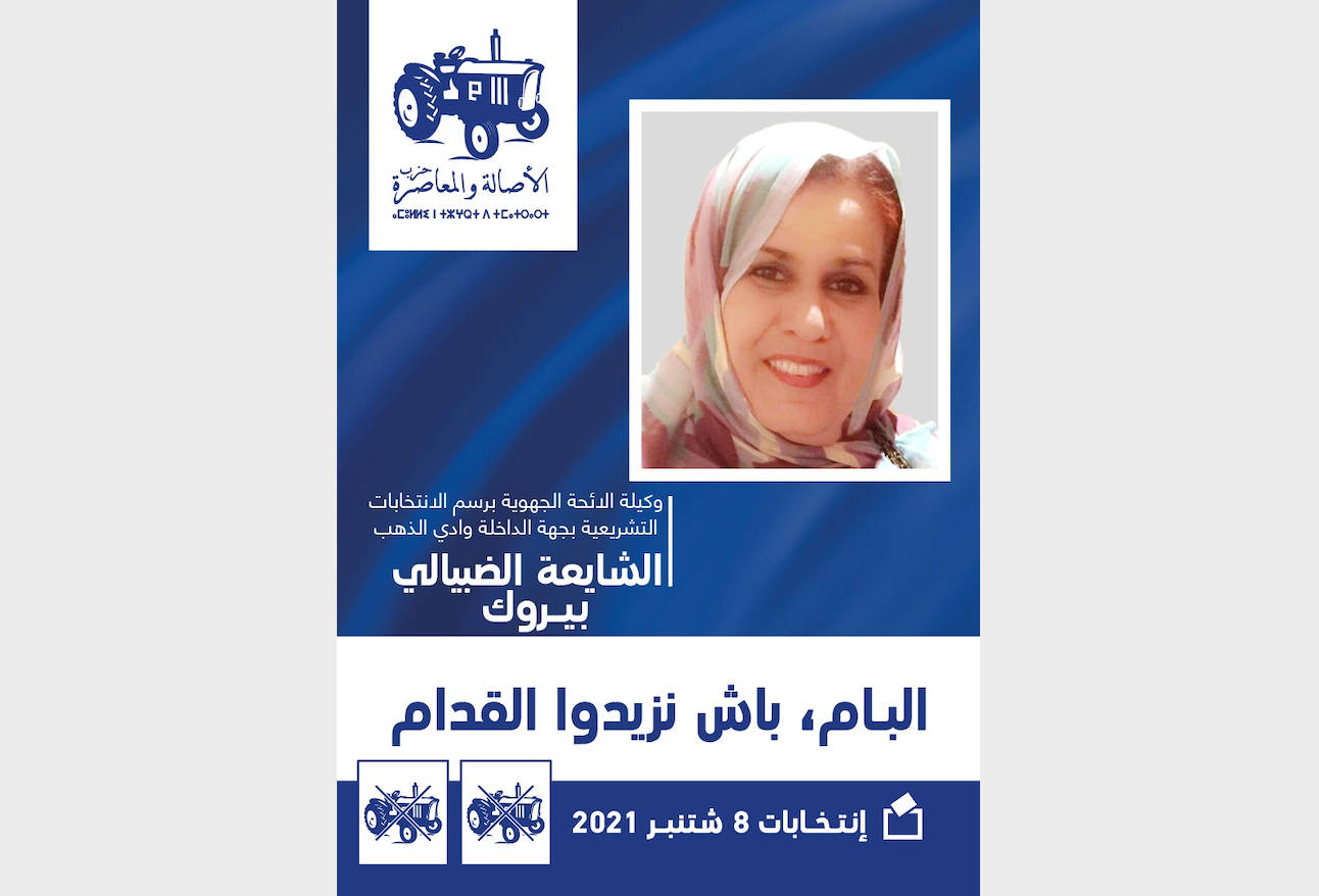 هي من النساء الأوائل اللواتي كسرن طابوه منع المرأة الصحراوية من ممارسة السياسة، قامة نضالية نسائية كبيرة، مدافعة شرسة عن قضية وحدتها الترابية، مسارها السياسي لم يكن مفروشا بالورود، لكنها ناضلت وكافحت من أجل أن تسطر لنفسها مسارا مهنياً وسياسياً متميزاً بفضل حنكتها وصلابة الكاريزما الحديدية التي تتمتع بها، كل هذه الخصال وأكثر اجتمعت في شخصية الشائعة الضبيالي منت بيروك إبنة أحد المقاومين البررة، والتي اختارها حزب الأصالة والمعاصرة، لقيادة اللائحة الجهوية للحزب بجهة الداخلة واد الذهب، خلال استحقاقات الثامن من شتنبر الجاري، كممثلة لمغاربة العالم.