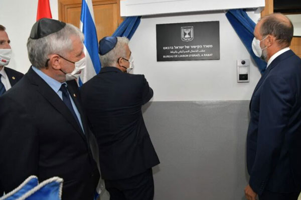 تم اليوم الخميس بالرباط، تدشين مكتب الاتصال لدولة إسرائيل، من طرف وزير الشؤون الخارجية الإسرائيلي، يائير لبيد، الذي يقوم حاليا بزيارة للمملكة.