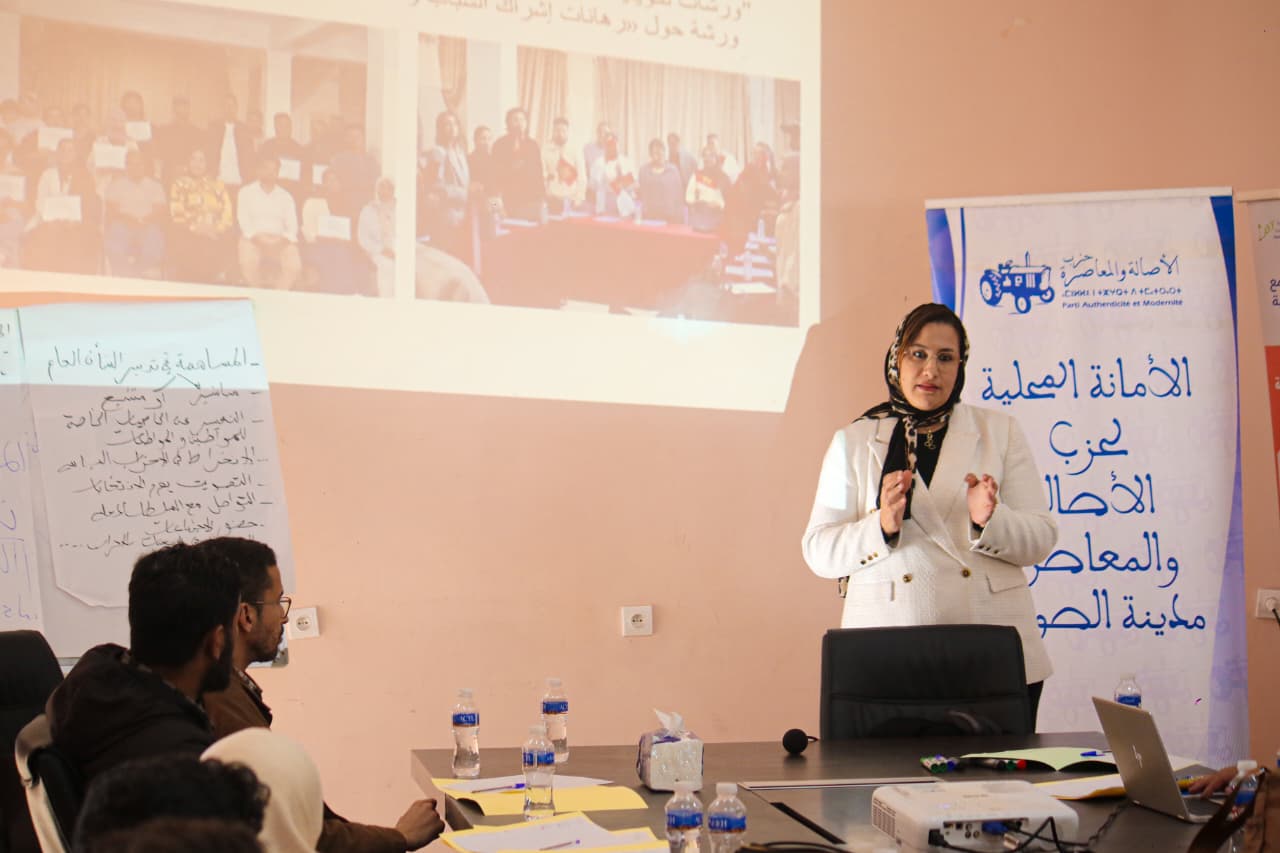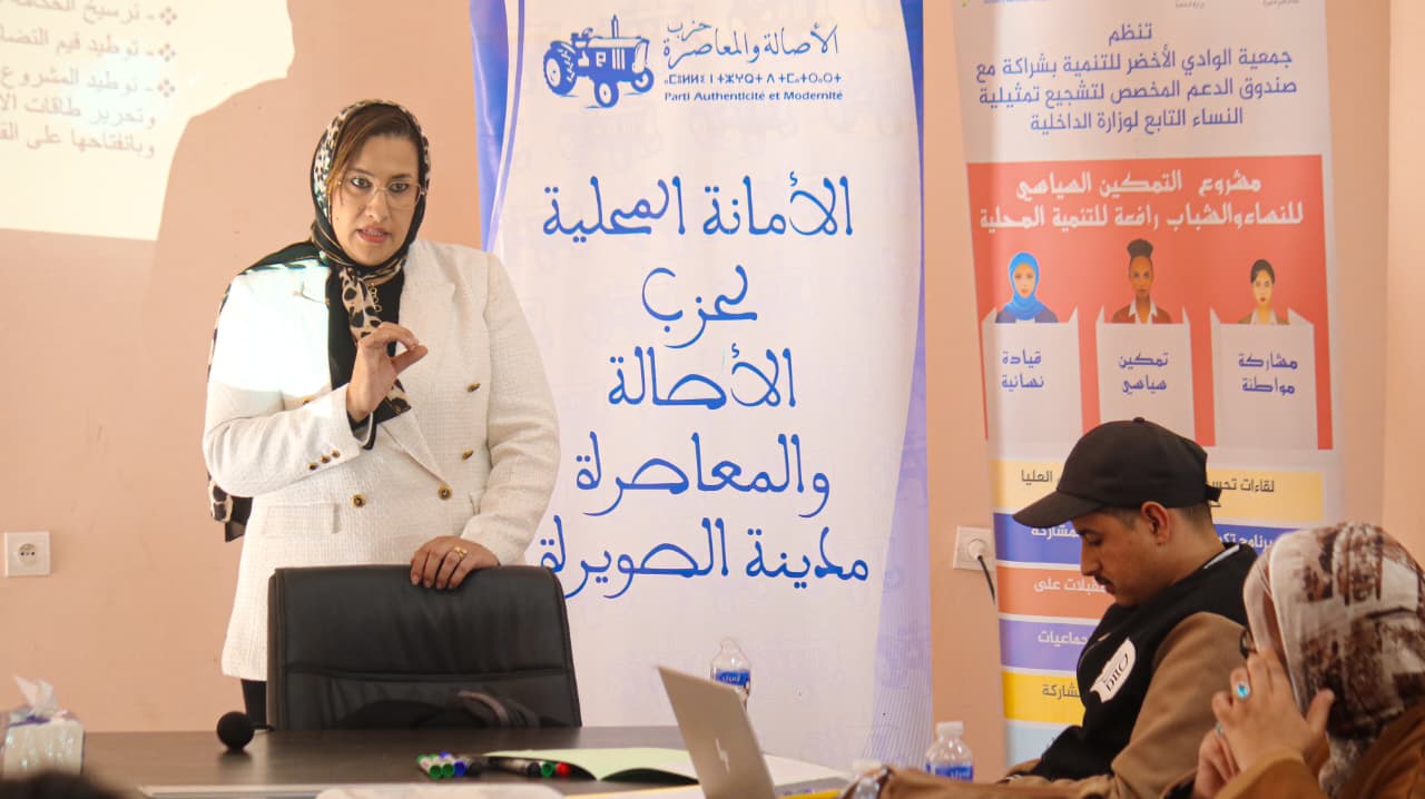 في إطار تنزيل مشروع التمكين السياسي للنساء والشباب رافعة للتنمية المحلية، نظمت جمعية الوادي الأخضر للتنمية، بتنسيق مع الأمانة المحلية لـحزب الأصالة والمعاصرة بالصويرة، وبدعم من صندوق الدعم لتشجيع تمثيلية النساء، ورشة تكوينية لفائدة نساء وشباب الحزب، وذلك يوم السبت 14 فبراير 2026 بالمركز الثقافي بمدينة الصويرة.