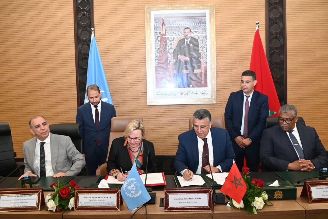 ووقع على مذكرة التفاهم كل من وزير العدل، عبد اللطيف وهبي، والسيدة آنا جوبان بريه، الأمينة العامة للجنة الأمم المتحدة للقانون التجاري الدولي.