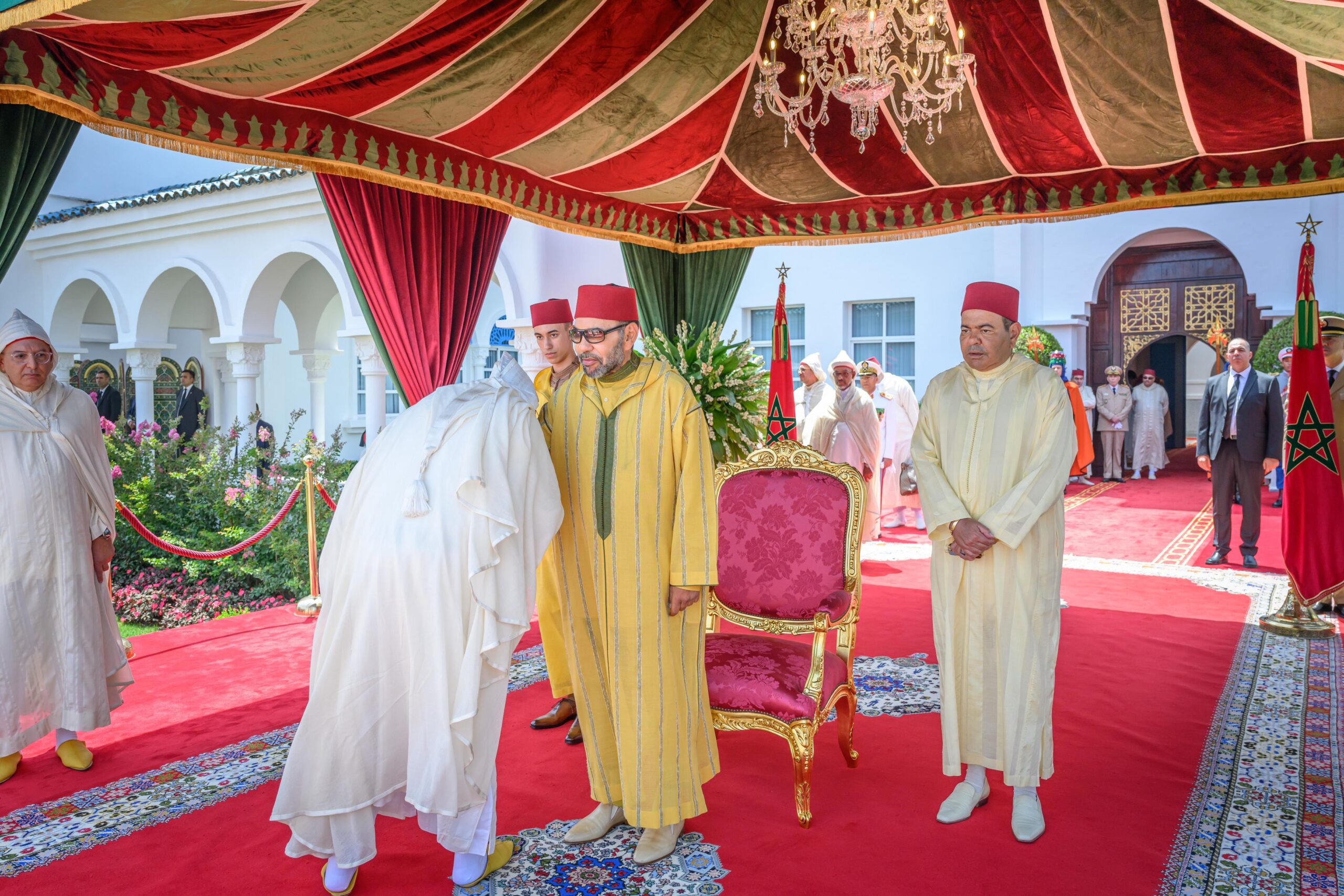 وتقدم للسلام على جلالته، أيضا، كل من الرئيس المنتدب للمجلس الأعلى للسلطة القضائية الرئيس الأول لمحكمة النقض السيد محمد عبد النباوي، ورئيس النيابة العامة الوكيل العام للملك لدى محكمة النقض السيد الحسن الداكي، ورئيس المحكمة الدستورية السيد محمد أمين بنعبد الله.