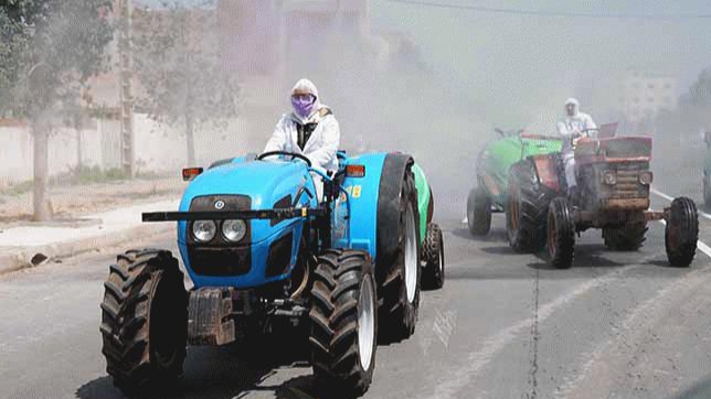 وأشرف كل من رئيس الجماعة وقائد القيادة، على إجراءات التنظيف والتعقيم المناسبة داخل ووسط الأماكن والشوارع العمومية والإدارات، وذلك بمساهمة فلاحي المنطقة الذين وضعوا عشرات الجرارات مجهزة بالوسائل الوجستيكية المستخدمة في هذه الحملة التعقيمية.