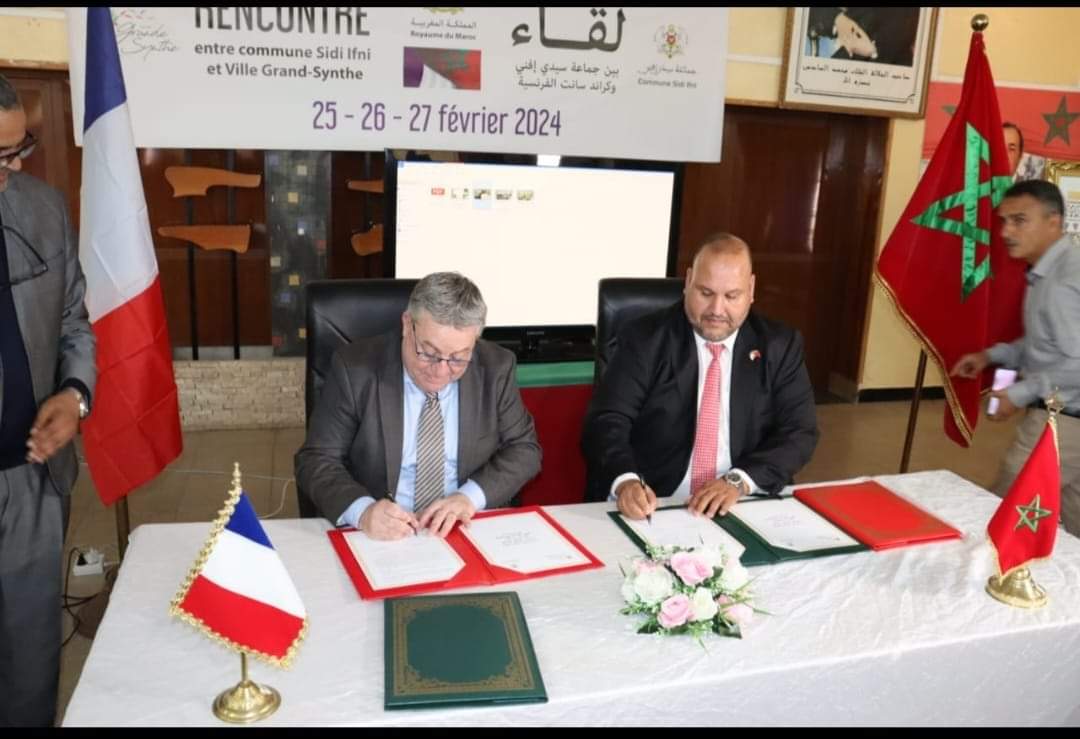 جماعة سيدي إفني.. البطاح يوقع اتفاقية تعاون مع وفد فرنسي يمثل جماعة كراندسانت