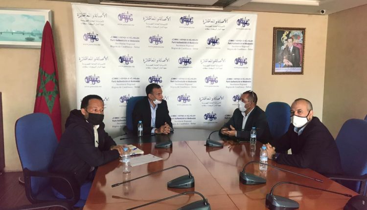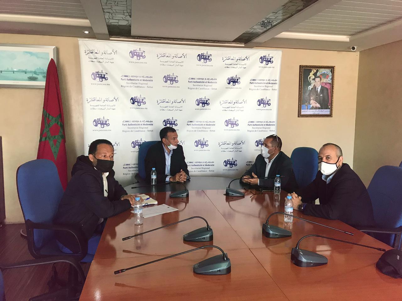 احتضن المقر الجهوي لحزب الأصالة والمعاصرة بجهة الدار البيضاء-سطات، صباح أمس الثلاثاء 03 نونبر 2020 بمدينة الدار البيضاء، اجتماعا تواصليا مع حرفيي الصناعة التقليدية بعمالة مقاطعات سيدي البرنوصي سيدي مومن، وذلك برئاسة محمد أيت إيشو، رئيس الهيئة الوطنية لصناع وحرفيي الصناعة التقليدية، وبحضور كل من علمي البستاني والبوعزاوي الكوط، عضوي غرفة الصناعة التقليدية.