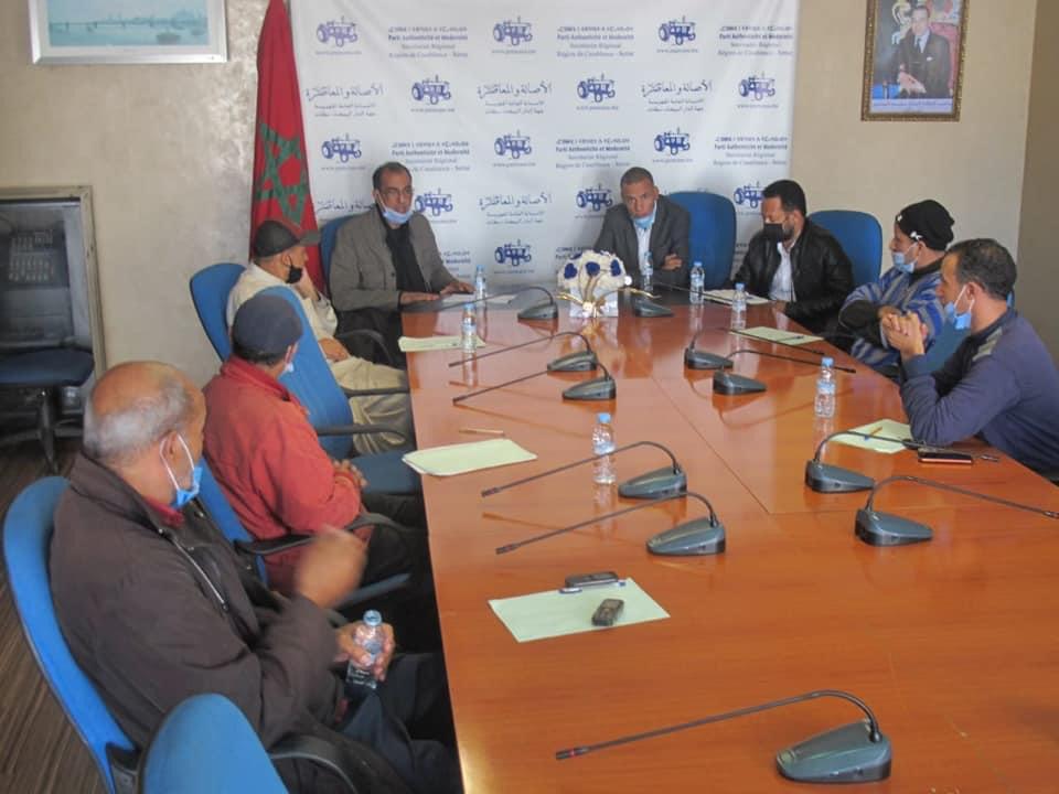 في إطار سلسلة من اللقاءات التواصلية مع حرفيي الصناعة التقليدية بكل أقاليم جهة الدار البيضاء سطات، والرامية إلى الوقوف على الإكراهات والمشاكل والارتقاء بهذا القطاع الى مستوى أفضل، احتضن المقر الجهوي لحزب الأصالة والمعاصرة للجهة بمدينة الدار البيضاء، يوم الأربعاء 11 نونبر 2020، اجتماعا تواصليا مع حرفيي الصناعة التقليدية بعمالة مقاطعة عين الشق.
