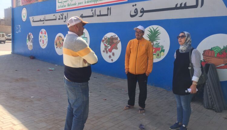 وفي هذا الإطار، اجتمعت الماسي مع الأمين المحلي لجمعية السوق النموذجي لاولاد تايمة الذي عبر لها عن امتعاضه من الوضعية التي يعيشها تجار السوق، بسب بالكساد الذي سببه بائعو الأرصفة الذن خلقوا تجمعا تجاريا عشوائيا “سويقة” بجانب السوق النموذجي، وذلك أمام مرأى السلطات المحلية التي تحاربهم تارة وفي أغلب الأحيان لا تحرك ساكنا أمام تفاقم هذا الوضع الذي يهدد تجار السوق النموذجي بالإفلاس. كما اعتبروا ان عملية توزيع المحلات شابها عدد من الخروقات من خلال منح حق الإستفادة لأشخاص لا صلة لهم بالتجارة، بل وقاموا ببيع محلاتهم في تناقض مع دفتر التحملات المنصوص عليه من طرف السلطات الإقليمية والمحلية، وفق إفادات التجار المتضررين.
