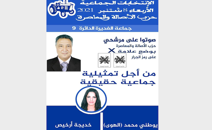 كشفت خديجة أرخيص المرشحة عن حزب الأصالة والمعاصرة لإنتخاب أعضاء جماعة الغدير بإقليم بئر الجديد بالدائرة 09، أن ترشيحها للانتخابات الجماعية يأتي في إطار إيمانها الراسخ بأهمية مشاركة المرأة في الحياة السياسية، الذي أصبح ضرورة ملحة يفرضها واقع التطور وتحتمها الحاجة، وهذا ما يسعى دستور 2011 إلى تحقيقه في الفصل 19 منه.