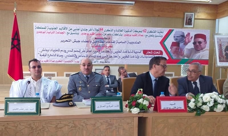 أكــــــد، رئيس المجلس الإقليمي لبوجدور أحمد خيار، في كلمة له خلال المهرجان الخطابي المنظم إحياء للذكرى 62 لمعركة الدشيرة الخالدة والذكرى 44 لجلاء آخر جندي أجنبي عن الأقاليم الجنوبية للمملكة، بحضور المندوب السامي لقدماء المقاومين وأعضاء التحرير السيد مصطفى لكثيري وشخصيات مدنية وعسكرية، (أكــــد) علـــى أهمية صيانـــة الذاكرة الوطنية والحفاظ على الموروث التاريخي الوطني والمحلي، لما لذلك من انعكاس على التشبث بالثوابت الوطنية ومقدساتها وزرع قيم المواطنة الحقة.