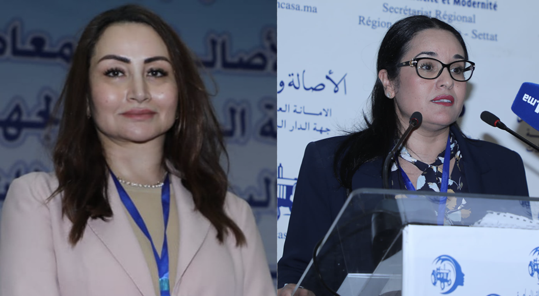 رئيسة منظمة نساء حزب الأصالة والمعاصرة قلوب فيطح تهنئ نادية فكري بمناسبة انتخابها رئيسة للمكتب الجهوي للمنظمة بجهة الدار البيضاء سطات