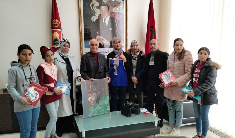 وقدم حدوش جوائز للتلميذات المكرمات، وبدورهن قدمن له لوحة فنية من إبداعهن تحت إشراف مؤطر ورشة الرسم الأستاذ محمد الصغداوي.