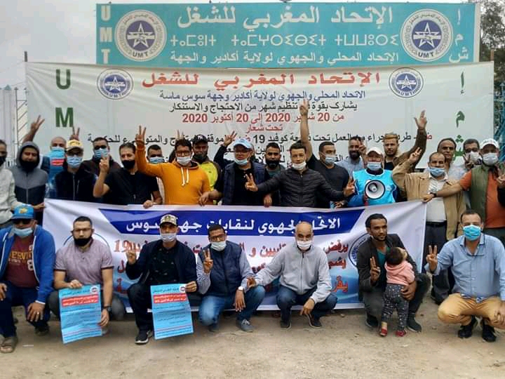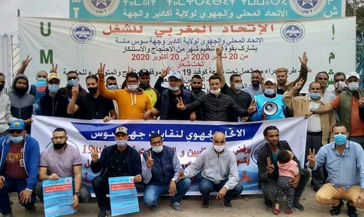 تم يوم الأحد 18 أكتوبر 2020، تنظيم وقفة احتجاجية أمام المقر الجهوي للنقابة، من طرف الاتحاد الجهوي لنقابات جهة سوس ماسة المنضوية تحت لواء الاتحاد المغربي للشغل في أكادير، وذلك تفعيلا لشهر الغضب الذي قررته الأمانة الوطنية للاتحاد النقابي.
