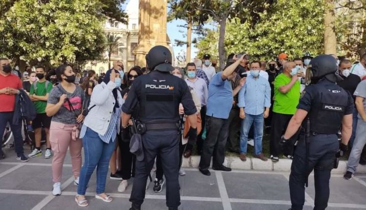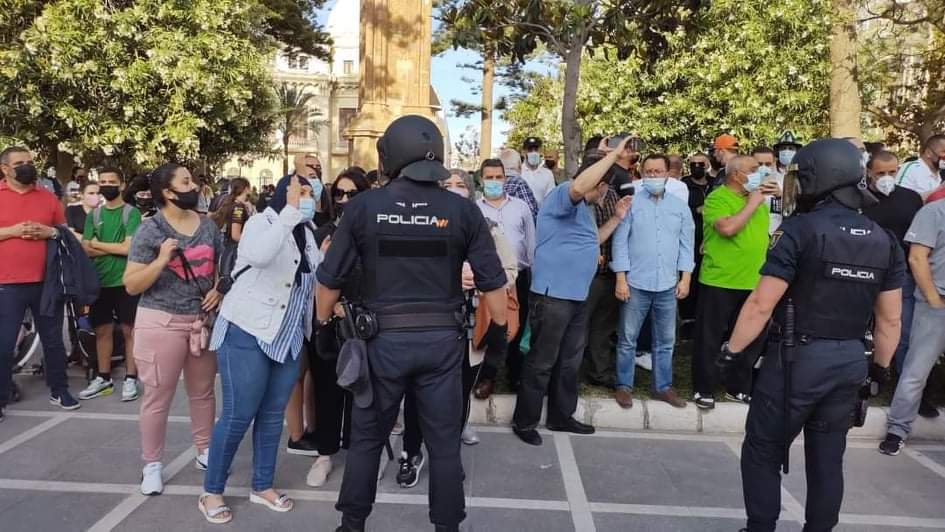 المحتجون رفعوا شعارات ضد حزب “فوكس” المعادي للمسلمين عموما والمغاربة بشكل خاص، المتواجدين سواء في إسبانيا أو بثغر سبتة المحتلة.