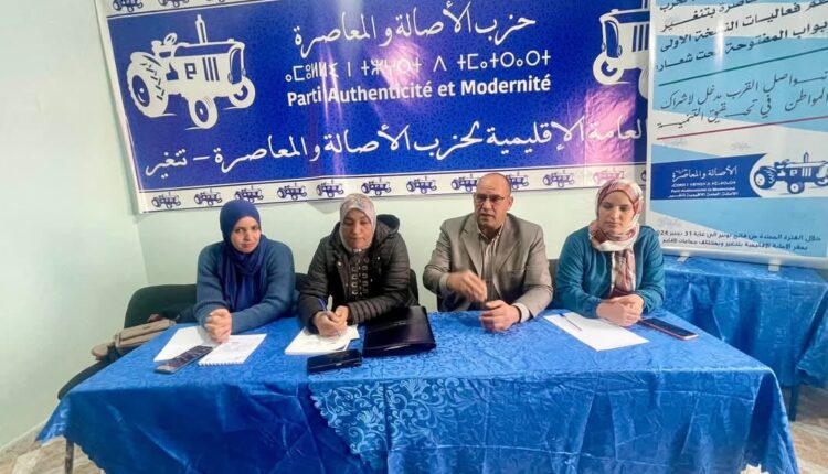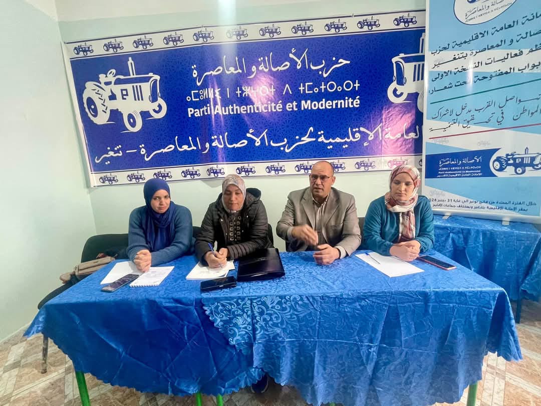 تنزيلا لبرنامج الأمانة العامة الإقليمية لحزب الأصالة والمعاصرة بتنغير، وفي إطار الأبواب المفتوحة التي دعت إليها القيادة الجماعية للحزب تحت شعار “تواصل القرب مدخل لاشراك المواطن في تحقيق التنمية”، نظمت الأمانة الإقليمية بتنغير، يوم الأحد 24 نونبر 2024، لقاء تواصليا لنساء الأصالة والمعاصرة، أطرته سعاد ايت علي عضو المجلس الوطني لمنظمة الأصالة والمعاصرة وعضو مجلس جهة درعة- تافيلالت، تحت إشراف محمد منصوري الأمين الإقليمي بتنسيق مع أعضاء المجلس الوطني وبحضور كل من محند الطاهري وعبد الصمد حدا.