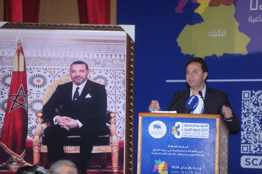 وذكر أبوالغالي المؤتمرات والمؤتمرين في كلمته خلال أشغال المؤتمر الجهوي لجهة الشرق المنعقد يومه الأحد 26 ماي 2024، بوجدة، بمضامين الخطاب السامي لصاحب الجلالة الملك محمد السادس نصره الله وأيده، بتاريخ 18 مارس 2003، والذي أشاد فيه جلالته بـ: “الحفاوة والولاء وخصال الإباء والغيرة الوطنية التي جعلت من هذه المنطقة الدرع الواقي لحوزة الدولة المغربية عبر تاريخها المجيد”.