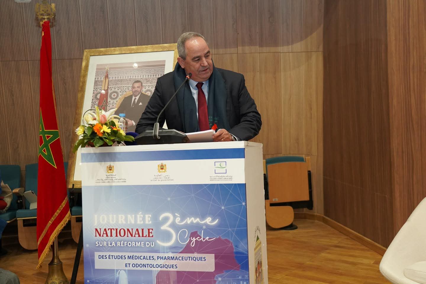 تماشيا مع التوجيهات الملكية السامية الهادفة إلى إصلاح المنظومتين الصحية والتربوية، وفي إطار تنزيل الورش الملكي لتعميم الحماية الاجتماعية خاصة في شقه المتعلق بالرأسمال البشري والرفع من كثافة الأطر الصحية، ترأس وزير التعليم العالي والبحث العلمي والابتكار، عز الدين مداوي، ووزير الصحة والحماية الاجتماعية، أمين التهراوي، الجلسة الافتتاحية لليوم الوطني حول إصلاح السلك الثالث في الدراسات الطبية والصيدلانية وطب الأسنان، يوم السبت 13 دجنبر 2025 بمقر كلية الطب والصيدلة بالرباط.