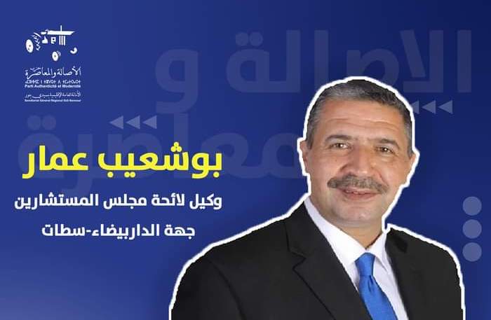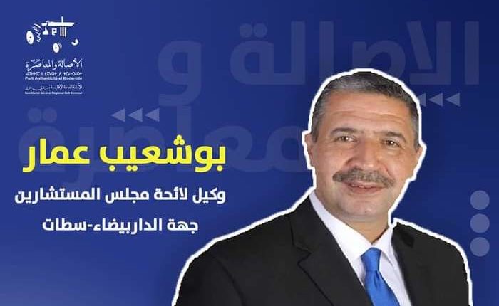 ترشح بوشعيب عمار عن حزب الأصالة والمعاصرة لإنتخابات أعضاء مجلس المستشارين، المزمع إجراؤها يوم 6 أكتوبر الجاري، ممثلا عن الجماعات المحلية بجهة الدار البيضاء سطات.