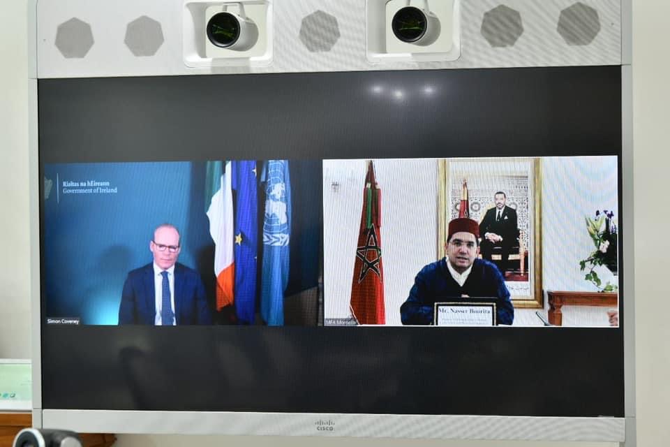أجرى وزير الشؤون الخارجية والتعاون الإفريقي والمغاربة المقيمين بالخارج، ناصر بوريطة، اليوم الثلاثاء، مباحثات عبر تقنية التناظر المرئي، مع وزير الخارجية والدفاع الإيرلندي، سيمون كوفيني.