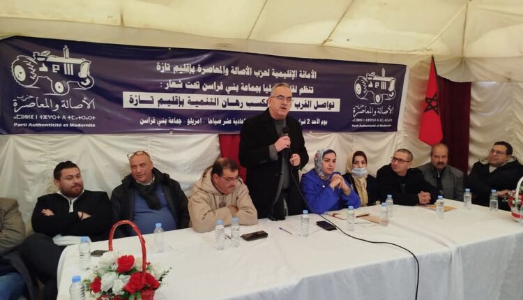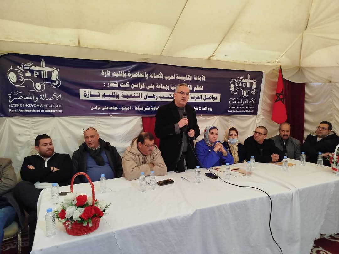 في إطار اللقاءات التواصلية والإشعاعية لحزب الأصالة والمعاصرة بأقاليم جهة فاس- مكناس، نظمت الأمانة الإقليمية للحزب بإقليم تازة، لقاء تواصليا بجماعة بني فراسن تحت شعار: “تواصل القرب مدخل لكسب رهان التنمية بإقليم تازة”، يوم الأحد 2 فبراير 2025 بجماعة بني فراسن.